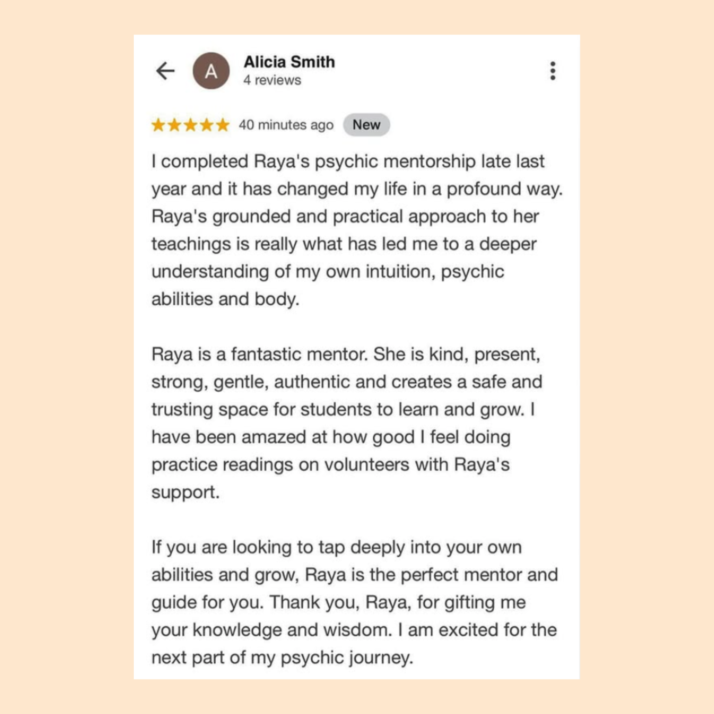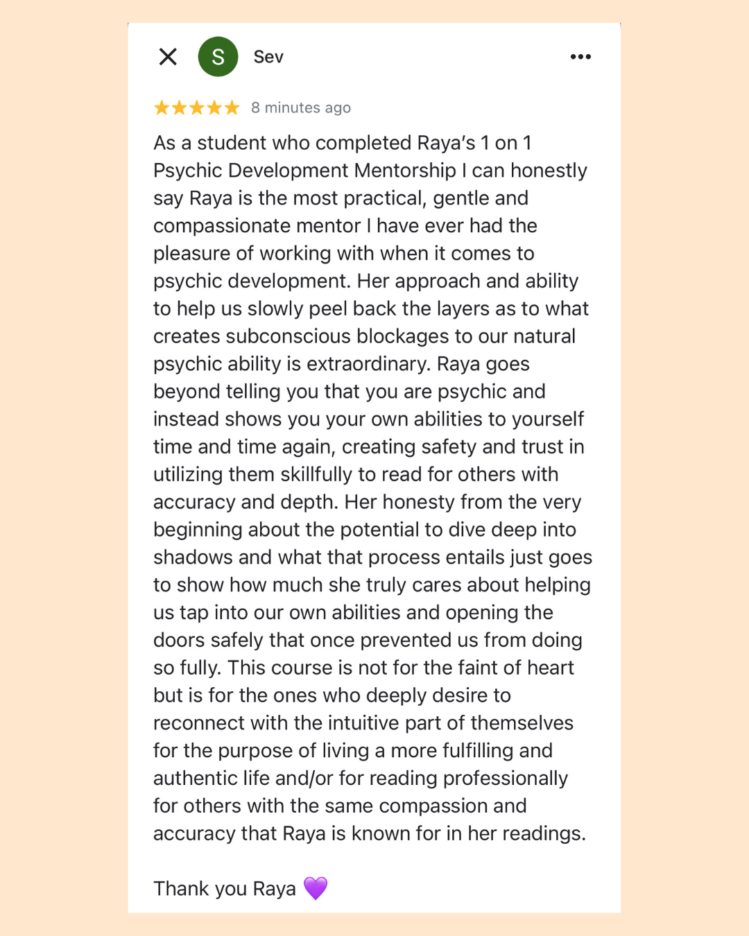 Access to Raya Thorne’s Psychic Development Facebook Group where you can interact with other students and practice psychic readings together